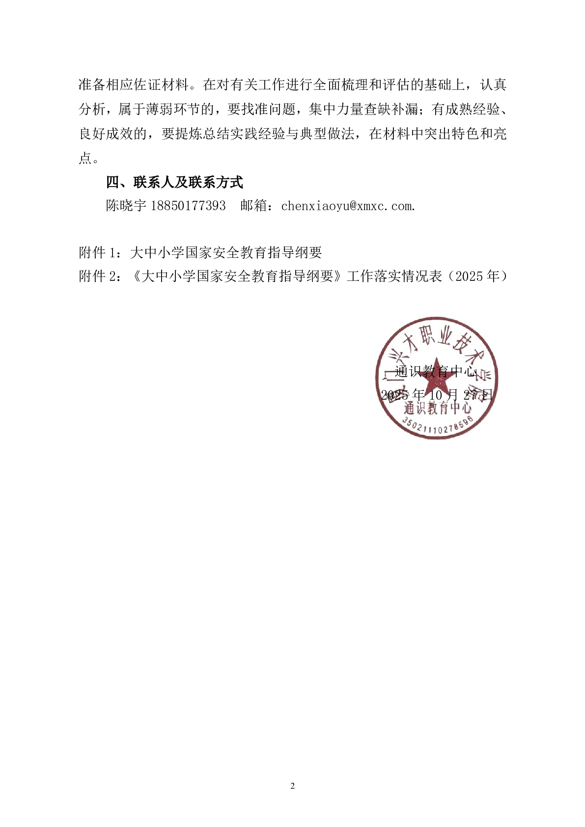 关于开展《大中小学国家安全教育指导纲要》落实情况自查的通知