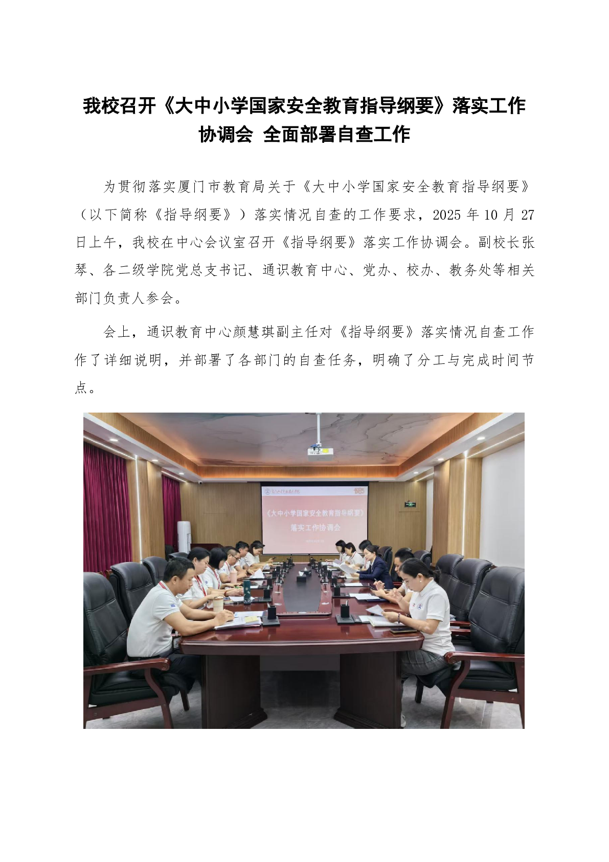 我校召开《大中小学国家安全教育指导纲要》落实工作协调会 全面部署自查工作