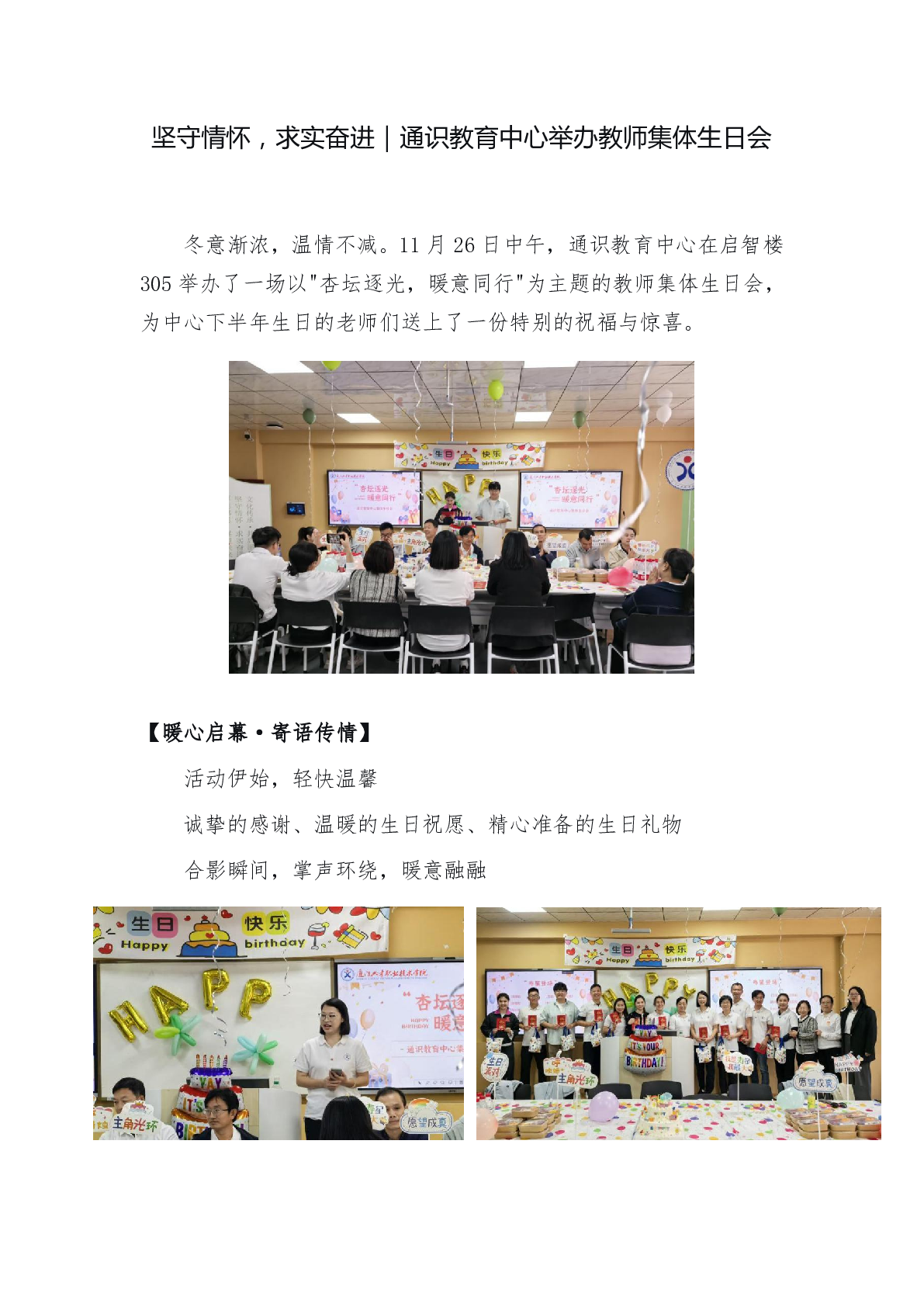坚守情怀,求实奋进|通识教育中心举办教师集体生日会